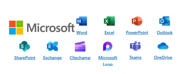 Access, Cortana, Delve, Excel, Sécurité parentale, Kaizala, Microsoft Edge mobile, Microsoft Forms, Microsoft Teams, Microsoft Teams mobile, Microsoft To Do, Office Lens pour Android, Office Lens pour iOS, OneDrive, OneNote, Outlook, Outlook.com, Planificateur, PowerPoint, Project, Publisher, SharePoint, Skype, Sway, Visio, Tableau blanc, Word, Yammer, Votre téléphone